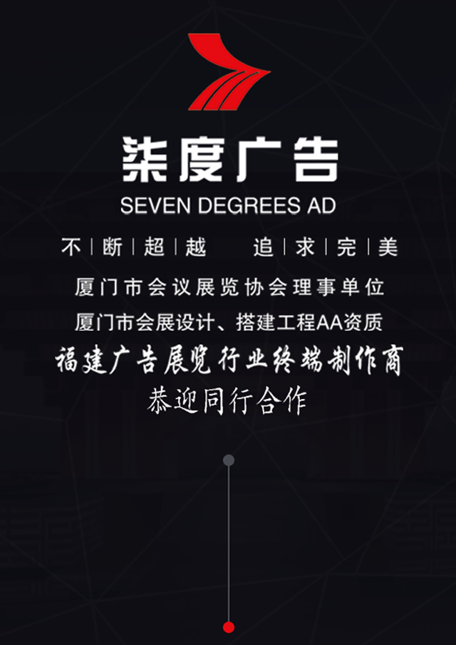 廈門柒度廣告策劃有限公司是一家致力于會展與展廳設計搭建、會議策劃執行、活動策劃執行為核心業務的“一站式”廣告服務機構。